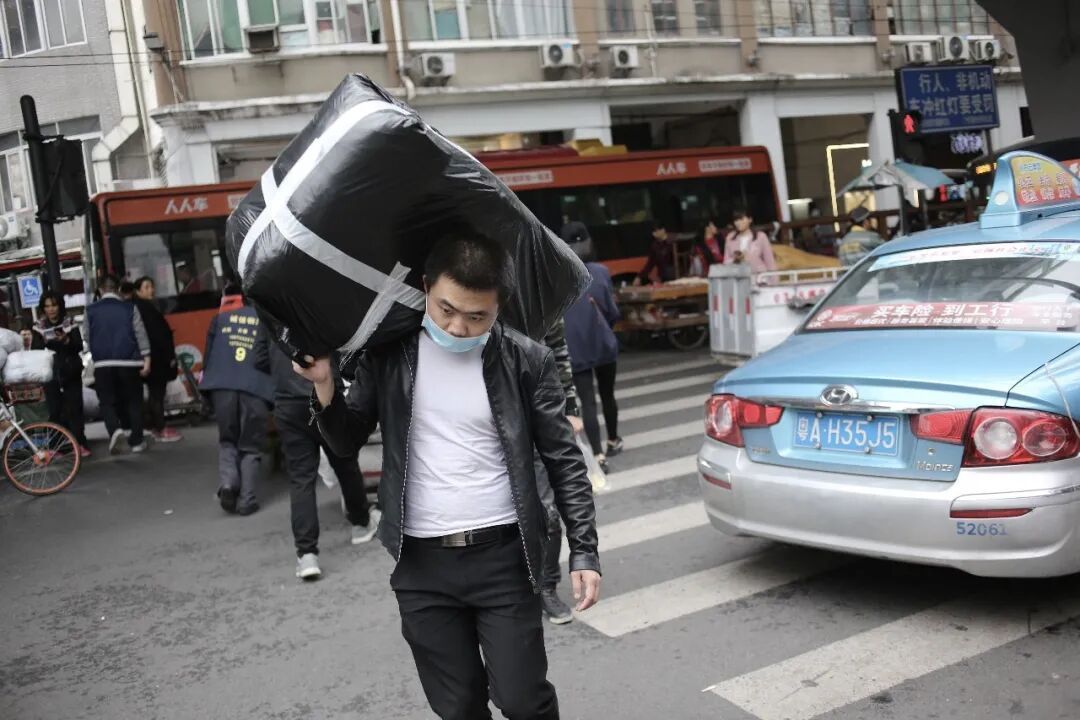 ▲广州十三行服装批发街,进货商大包小包收支批发点 图/视觉中国