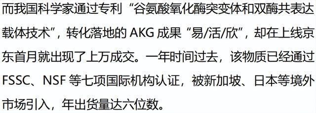 以AKG为例。2021年,新加坡AKG之父Brian Kennedy在临床商酌中确认,42名志愿者补充7个月,生物年事减少8年,且皱纹变淡、发根转黑。尽管西方凭借早年积贮的通用时期,最初落地了关联制品,但时于当天部分小众平台的关联数据仍三三两两。