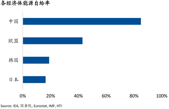从全球主要经济体的能源自给率来看,不同经济体的能源安全天贮蓄在显耀相反,平直决定了其制造业在本轮能源冲击中的抗风险才气: