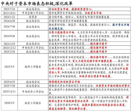 2023 年中央金融管事会议上,习近平总秘书初次系统讲述 “顽强不移走中国特质金融发展之路”,明确其与西方金融模式有本色区别,核心是宝石以东谈主民为中心的价值取向,宝石把金融服求实体经济行为根蒂宗旨。尔后,中央政事局会议屡次对本钱阛阓作出进军部署:2024 年 9 月提议 “起劲提振本钱阛阓”,2024 年 12 月与 2025 年 2 月均强调 “稳住股市”,2025 年 4 月进一步提议 “不竭强健和活跃本钱阛阓”;2026 年《十五五贪图摘录》明确提议 “加速建设金融强国”,条目不竭深化本钱阛阓投融资详尽改良,增强本钱阛阓轨制包容性、相宜性,提高平直融资比重,发展多元股权融资,加强交易监管和投资者保护,壮大耐性本钱,完善援助中长久资金入市政策体系。