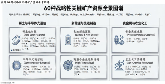好意思国方面,其枢纽矿产清单不竭扩容,USGS 于 2025 年发布的最终清单共包含 60 种枢纽矿产,其中铑(Rh)、镓(Ga)、锗(Ge)、钨(W)、铌(Nb)、镁(Mg)、钾盐(Potash)、钐(Sm)、镥(Lu)、铽(Tb)、镝(Dy)、钆(Gd)、钇(Y)被列为高供应风险。2025 年清单较 2022 年的 50 种进一步扩大,新增了铜、银、硅、铀、钾肥、磷矿、冶金煤等 10 种品种,60 种策略性枢纽矿产钞票隐蔽稀土磁材、半导体光通讯、电板新能源、高温合金先进制造、贵金属催化、农业化工资源六大核心领域。