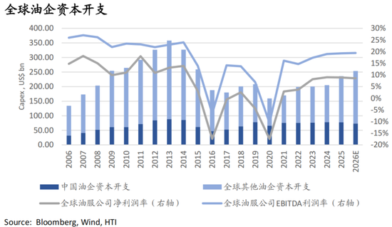 跟着地缘政事冲突不竭,策略石油储备需求将显耀提高,原油和自然气产量及运载量将受影响,全球原油供需样式或进一步趋紧。2025 年全球液体燃料产量达 1.07 亿桶 / 日,消费量为 1.05 亿桶 / 日。2020 年于今,全球油企本钱开支增速不竭处于低位,其中,中国油企本钱开支在 2006-2012 年间的复合年均增长率(CAGR)为 17.6%,而 2020-2025 年降至仅 3.2%;全球其他油企在 2006-2012 年间的 CAGR 为 15.4%,2020-2025 年也降至 11.2%。