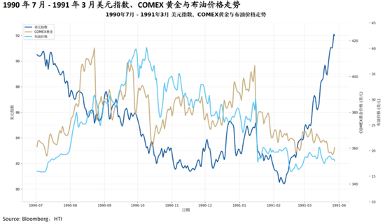 1990 年的海湾交易则进一步强化了好意思国在中东的影响力,石油好意思元闭环被再行沉着。油价从 16 好意思元 / 桶快速升至 40 好意思元 / 桶,涨幅 150%,但高位仅督察 2 个月,呈现 “买预期、卖事实” 的特征,开战即高点,战后快速回落至 20 好意思元下方;黄金从 350 好意思元 / 盎司涨至 410 好意思元 / 盎司,涨幅仅 17%,短期脉冲后快速回落,未变成长久趋势。核心逻辑是交易快速扫尾,阛阓无长久滞胀预期,避险需求快速落潮;而好意思国在交易中速胜,彰显了全球军事和经济霸权,好意思元行为避险货币的属性短期突显,与油价变成 “短期同涨” 后快速归来常态。
