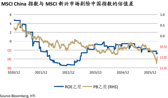 2026 年以来,MSCI 中国相对 MSCI 新兴阛阓剔除中国的 “PB 折价膨胀” 庞杂于 “ROE 差距扩大”:ROE 差由 - 2.3% 扩至 2.6%,但 PB 差由 - 0.8x 一度扩至 - 1.3x,随后在地缘局势影响下拘谨至 - 1.0x。这一次中国股市估值追逐外洋,咱们以为,将对应中国硬核钞票的系统性行情,访佛2016、2017年的核心钞票行情。