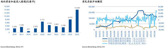 从增量资金来看,中国股市增量资金入场主要看内资再竖立,策略投资者与住户资金入市,有望成为推动中国股市行情不竭上行的主要力量;东谈主民币增值也有望蛊卦外资流入变成共振。具体来看,保障资金加速投资 A 股,竖立比例不竭提高;两融余额创下新高,阛阓交易活跃度有撑持;南向资金加速流入港股,不竭布局港股优质钞票;住户入款 “搬家” 趋势泄漏,为本钱阛阓带来长久增量资金。