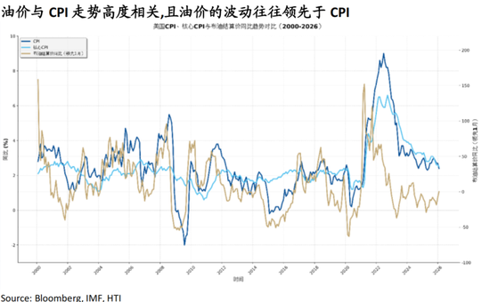 能源行为工业体系的基础原料,其替代弹性低,高油价将平直挤压企业利润,并削弱住户购买力,是宏不雅经济下行风险与通胀压力的核心开始。从历史数据来看,油价与 CPI 走势高度商量,且油价的波动每每首先于 CPI,本轮油价上升对通胀的传导将渐渐泄漏。