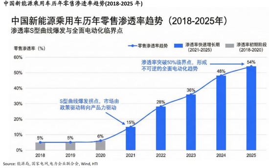 · 一是交通电动化,新能源车渗入率不竭提高,2025 年零卖渗入率已阻难 54%,越过 50% 的临界点,变周全面电动化趋势,并渐渐向商用车、公交、物流车、工程机械等领域扩展;
