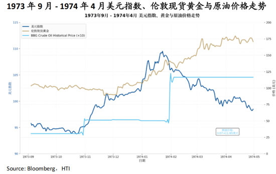1973 年石油危急期间,油价从 2.5 好意思元 / 桶暴涨至 12 好意思元 / 桶,涨幅达 380%,且高位督察超 1 年,变成不竭性供应冲击;黄金从 35 好意思元 / 盎司飙升至 180 好意思元 / 盎司,涨幅超 400%,后续更是延续牛市至 1980 年的 850 好意思元 / 盎司。其核心逻辑是 “交易避险 + 好意思元信用坍塌 + 滞胀” 三重共振,黄金从传统避险钞票升级为 “终极货币” 替代品;而布雷顿森林体系解体后本就处于残障的好意思元,在石油禁运冲击下贸易逆差与通胀不竭加重,产油国初始尝试非好意思元结算,好意思元指数大幅走弱,变成 “油价涨 - 好意思元跌” 的反向干系。
