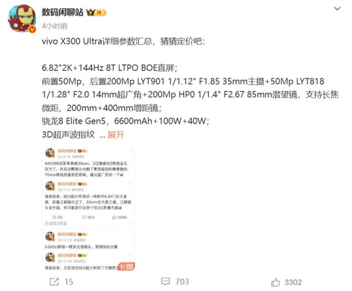 不外,问题也很履行。当一台手机什么王人想给的时候,它的价钱常常也不会手软。 是以vivo X300 Ultra最终能不成爆,不光看确立,还要看订价有莫得把用户凯旋劝退。