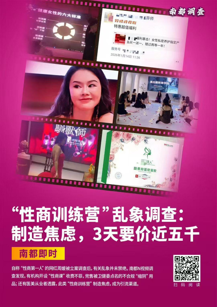 她名下的“瑕瑜颠性商学院”课程,捏续被诟病“露骨”“大次第”“贩卖女性火暴”。南都记者拜访发现,在近似的“性商查验营”里,女性学员对两性关系的火暴,正成为好意思容好意思体行业的变现开始。有机构称可提供980元一天的“性商培训课”,并在一又友圈宣传兜销多款“好意思妙养护”用品,宣称能“削弱骨盆、紧致缩阴”,而该类居品此前已被卫健委点名“不具备照看、保健、诊治的作用”。
