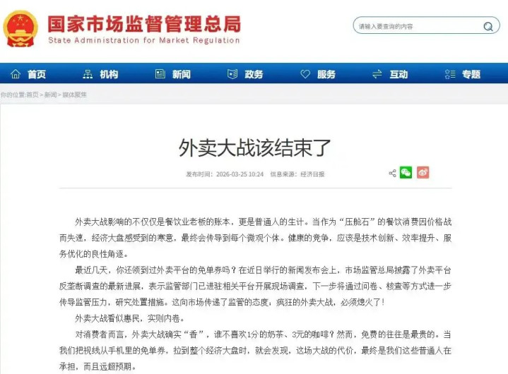 一个要津的改革来自于监管环境的明确。2026年1月,关联部门启动了对餐饮外卖行业阛阓竞争景色的走访。3月25日,也即是好意思团发布财报的前一天,《经济日报》发表了题为《外卖大战该收尾了》的议论著作,被阛阓多量解读为定调开荒行业住手恶性廉价竞争。